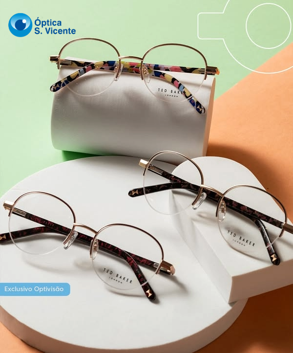 Estilo intemporal, detalhes únicos e a sofisticação que os seus olhos merecem. Descubra os modelos Ted Baker, uma marca exclusiva Optivisão.